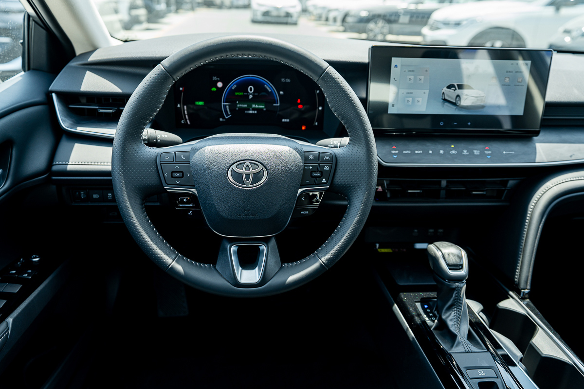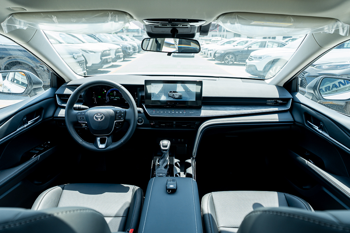 کابین تویوتا کمری هیبرید 2025 سفید فضای راحت و جاداری دارد. صندلی‌های چرمی با تهویه، نمایشگر لمسی بزرگ، سیستم‌های ایمنی فعال مانند کنترل کروز تطبیقی، هشدار خروج از مسیر و سیستم ترمز خودکار اضطراری از امکانات استاندارد این خودرو هستند. این ویژگی‌ها به تجربه ایمن‌تر و لذت‌بخش‌تر رانندگی کمک می‌کنند.